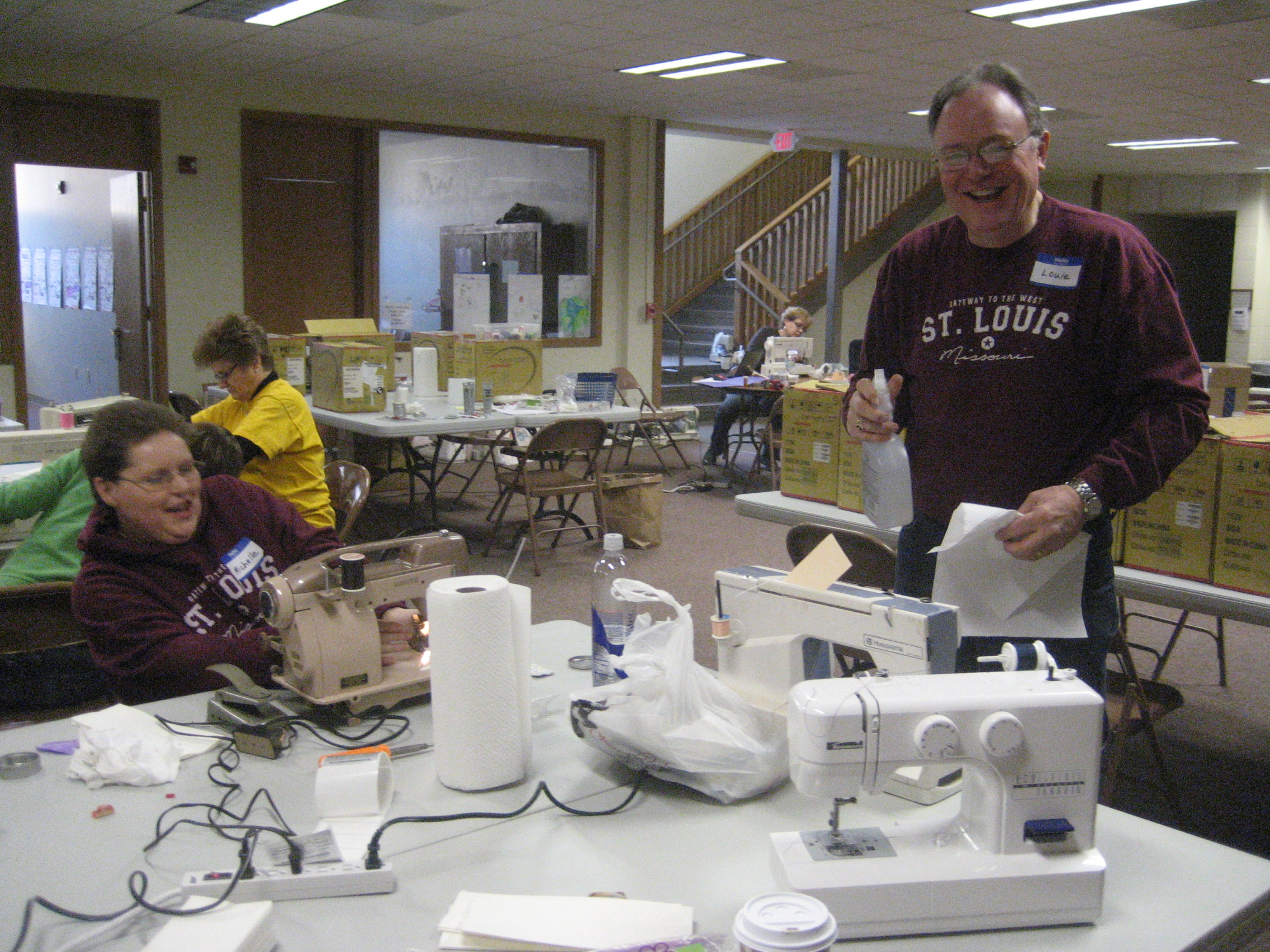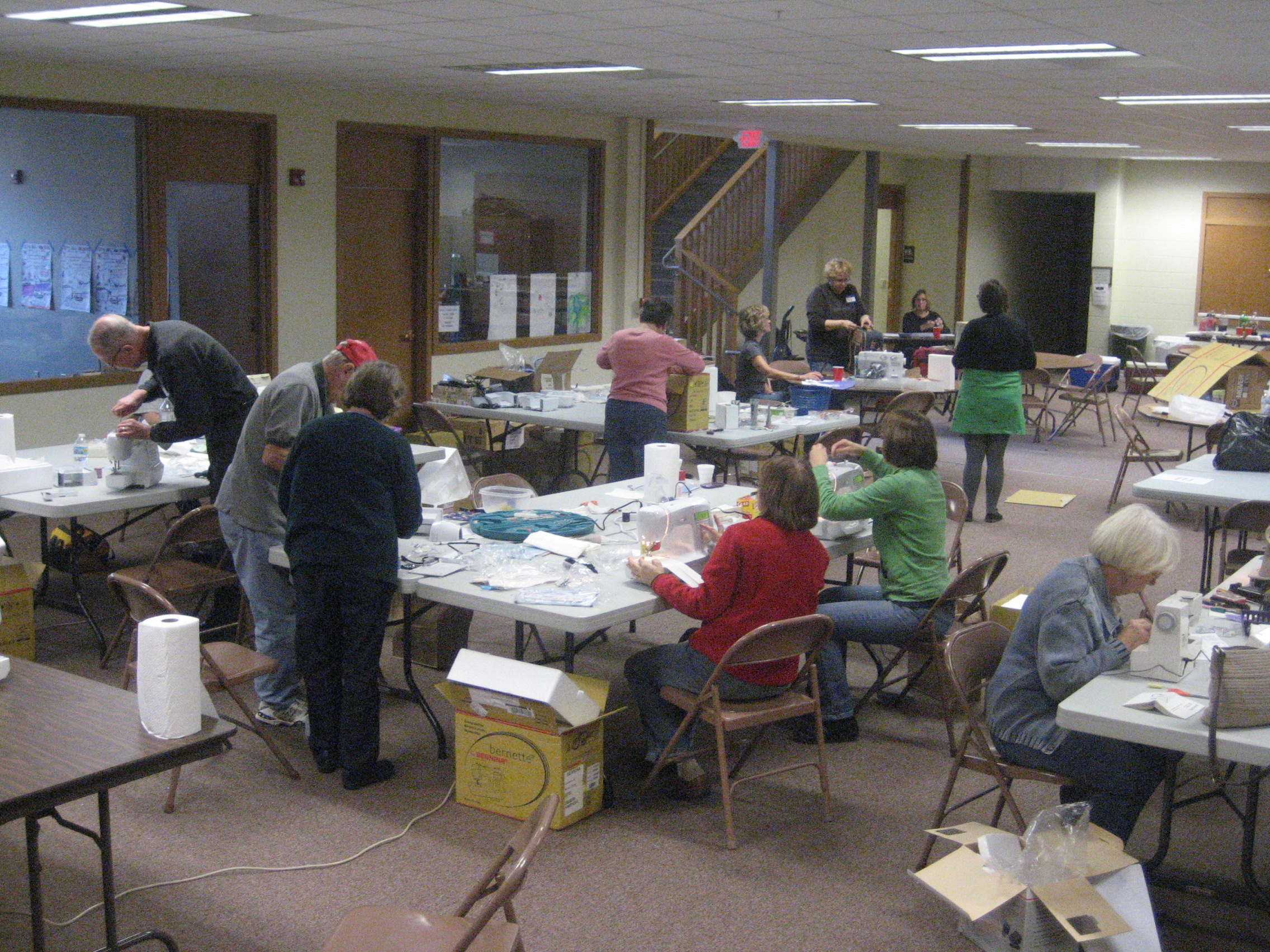 The response was overwhelming. The church graciously offered a larger workspace and we were off and running. There were people working on machines, packing a shipment, packing the truck for the warehouse, inventorying, you name it. We had two gracious hostesses, welcoming volunteers as they arrived and helping them get settled.
